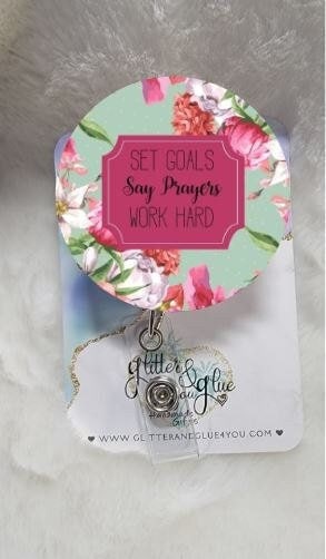 Set Goals, Say Prayers, Work Hard, Round Sublimation Retractable Interchangeable Badge Reel, Doctors Office, Hospital, Medical, ID Badge