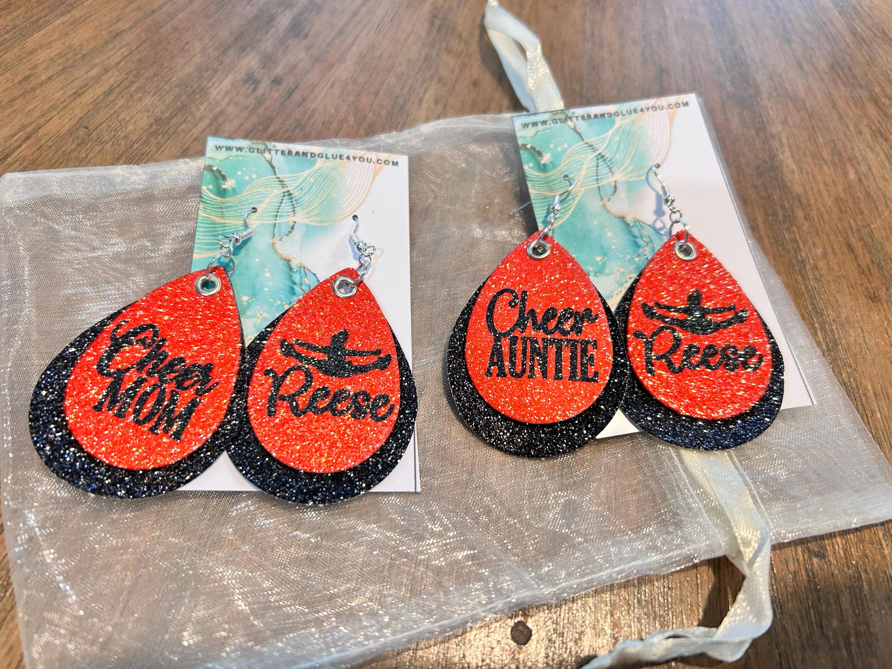 Cheer Mom on one earring and megaphone icon with Name below on other earring is standard, if you want anything different on one or both earrings please include clear instructions in Personalization/Note section on order or PM me with the details. I am not responsible for incorrect orders due to lack of information.