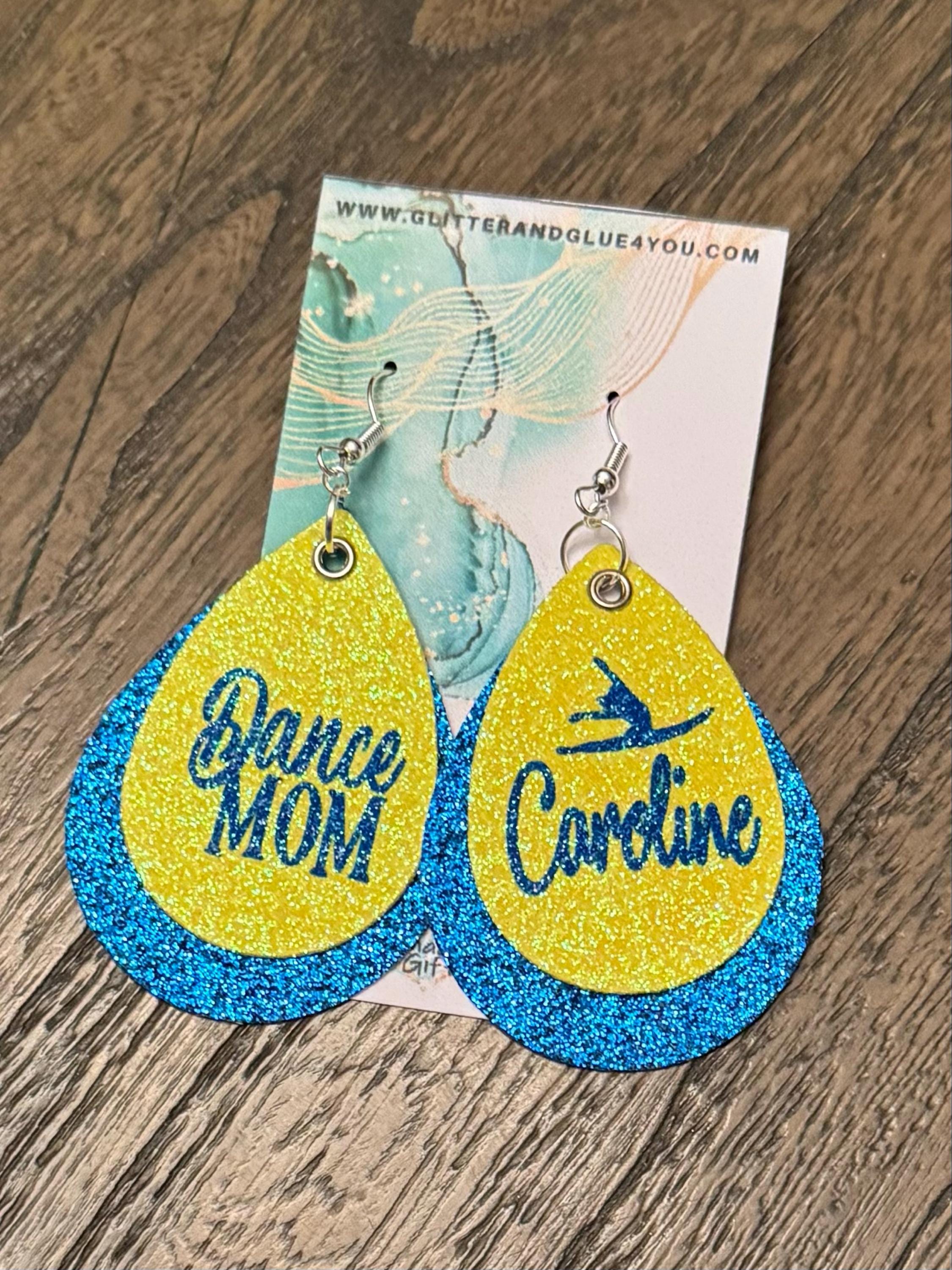 Dance Mom on one Earring and Dancer Icon with Name below on other Earring is standard, if you want a anything different on one or both earrings please include clear instructions in Personalization/Note section on order or PM me with the details. I am not responsible for incorrect orders due to lack of information.